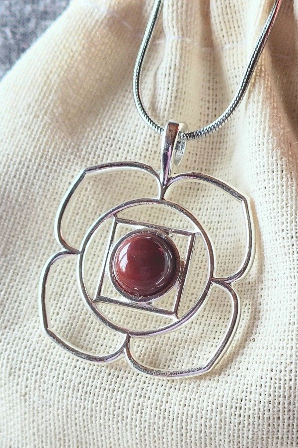 Descubrí la Cadena de acero de 50 cm con un elegante dije chakra Muladhara, bañado en plata (piedra ), diseñada para aquellos que buscan un equilibrio energético en su vida diaria. Este collar no es solo un accesorio, sino un poderoso amuleto que simboliza la conexión con los chakras.